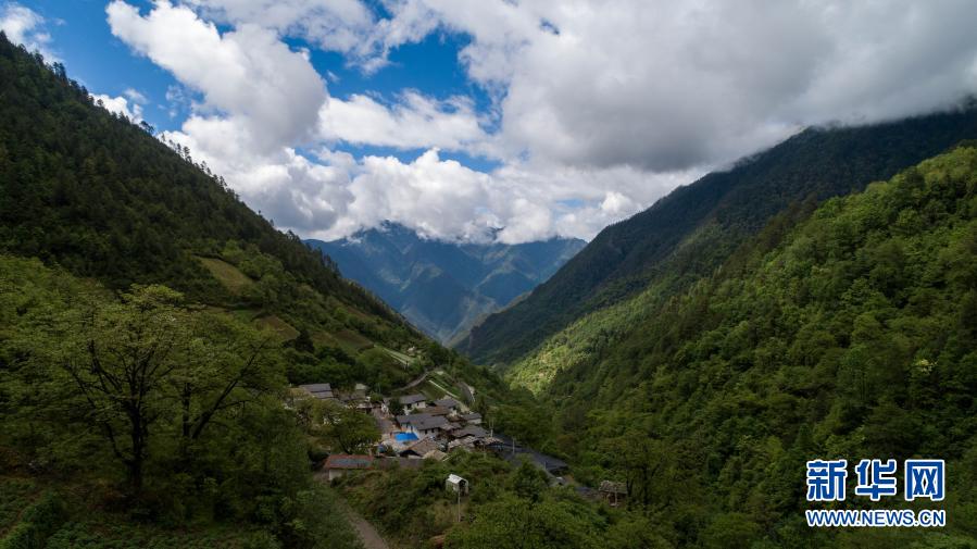 這是云南迪慶藏族自治州香格里拉滇金絲猴國家公園一景(無人機照片,2020年5月23日攝)。新華社記者 胡超 攝