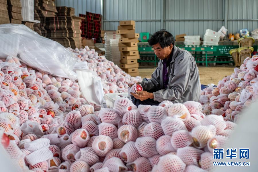 云南省會澤縣娜姑鎮(zhèn)牛泥塘村童盟種植專業(yè)合作社的農民在分揀石榴(2020年9月29日攝)。新華社記者 胡超 攝