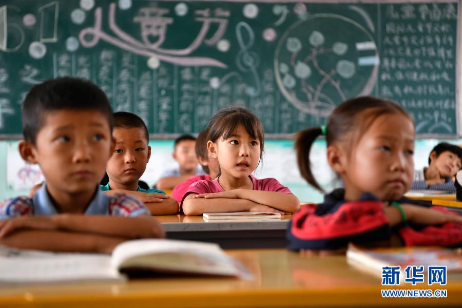 在寧夏銀川市永寧縣閩寧鎮(zhèn)原隆村原隆小學(xué),一年級的孩子們在上課(2019年9月3日攝)。新華社記者 王鵬 攝