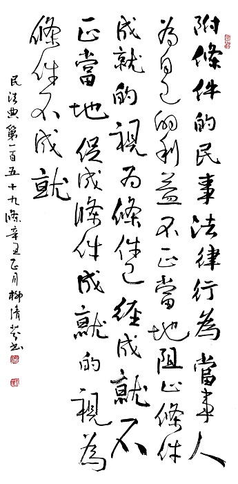 民法典第一百五十九條 附條件的民事法律行為,當(dāng)事人為自己的利益不正當(dāng)?shù)刈柚箺l件成就的,視為條件已經(jīng)成就;不正當(dāng)?shù)卮俪蓷l件成就的,視為條件不成就。