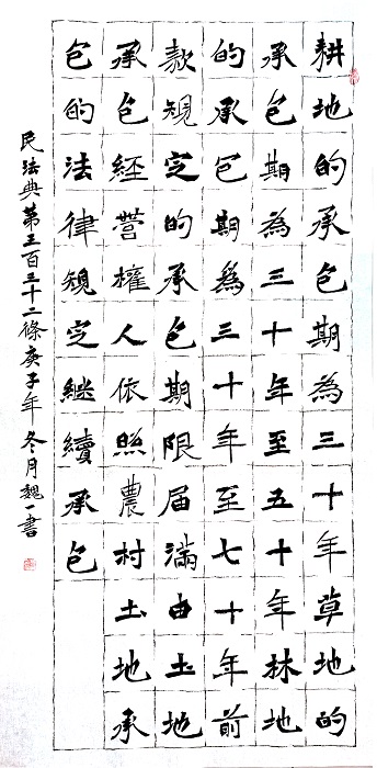 民法典第三百三十二條 耕地的承包期為三十年。草地的承包期為三十年至五十年。林地的承包期為三十年至七十年。