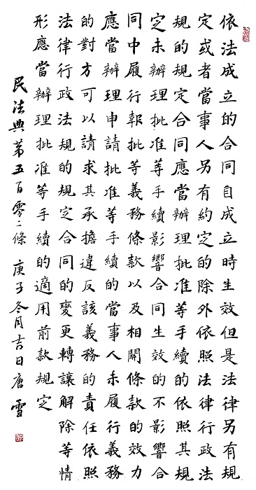 “書·法”活動(dòng)以書寫《中華人民共和國民法典》法條開筆,未來將對(duì)準(zhǔn)更多的法律。