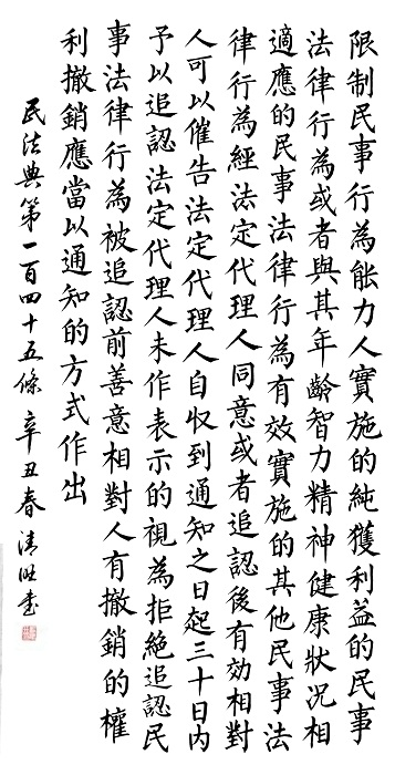 “書·法”活動(dòng)以書寫《中華人民共和國民法典》法條開筆,未來將對(duì)準(zhǔn)更多的法律。