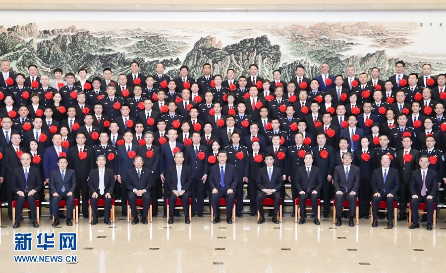 3月29日,黨和國家領(lǐng)導人習近平、王滬寧、趙樂際等在北京會見全國掃黑除惡專項斗爭總結(jié)表彰大會代表。 新華社記者 饒愛民 攝
