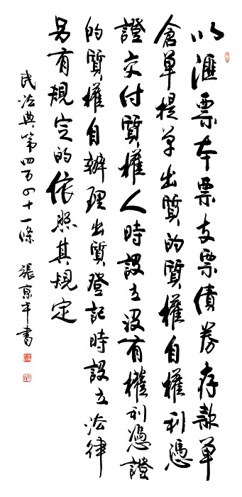 民法典第四百四十一條 以匯票、本票、支票、債券、存款單、倉單、提單出質(zhì)的,質(zhì)權(quán)自權(quán)利憑證交付質(zhì)權(quán)人時(shí)設(shè)立;沒有權(quán)利憑證的,質(zhì)權(quán)自辦理出質(zhì)登記時(shí)設(shè)立。法律另有規(guī)定的,依照其規(guī)定。