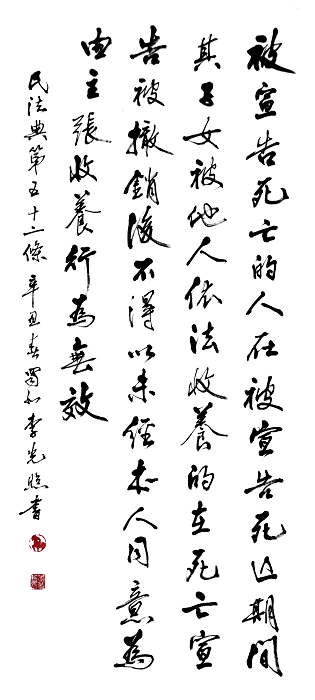 民法典第五十二條 被宣告死亡的人在被宣告死亡期間,其子女被他人依法收養(yǎng)的,在死亡宣告被撤銷后,不得以未經(jīng)本人同意為由主張收養(yǎng)行為無效。
