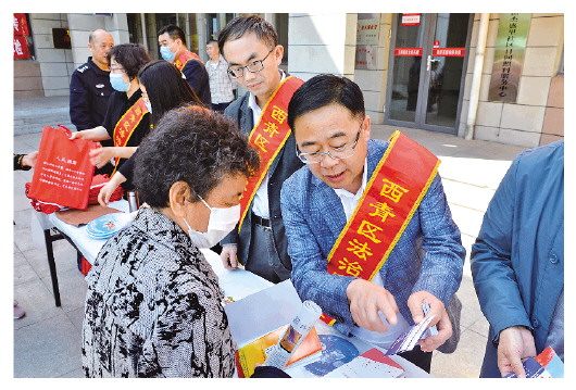 圖為天津市西青區(qū)司法局“法律服務(wù)輕騎兵”向群眾介紹便民聯(lián)系卡。法治日報(bào)通訊員 張鵬 攝