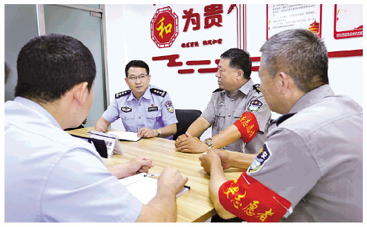 圖為遼寧省沈陽市公安局和平分局中華派出所副所長兼社區(qū)民警張登林與平安志愿者開展座談。法治日?qǐng)?bào)全媒體記者 韓宇 攝