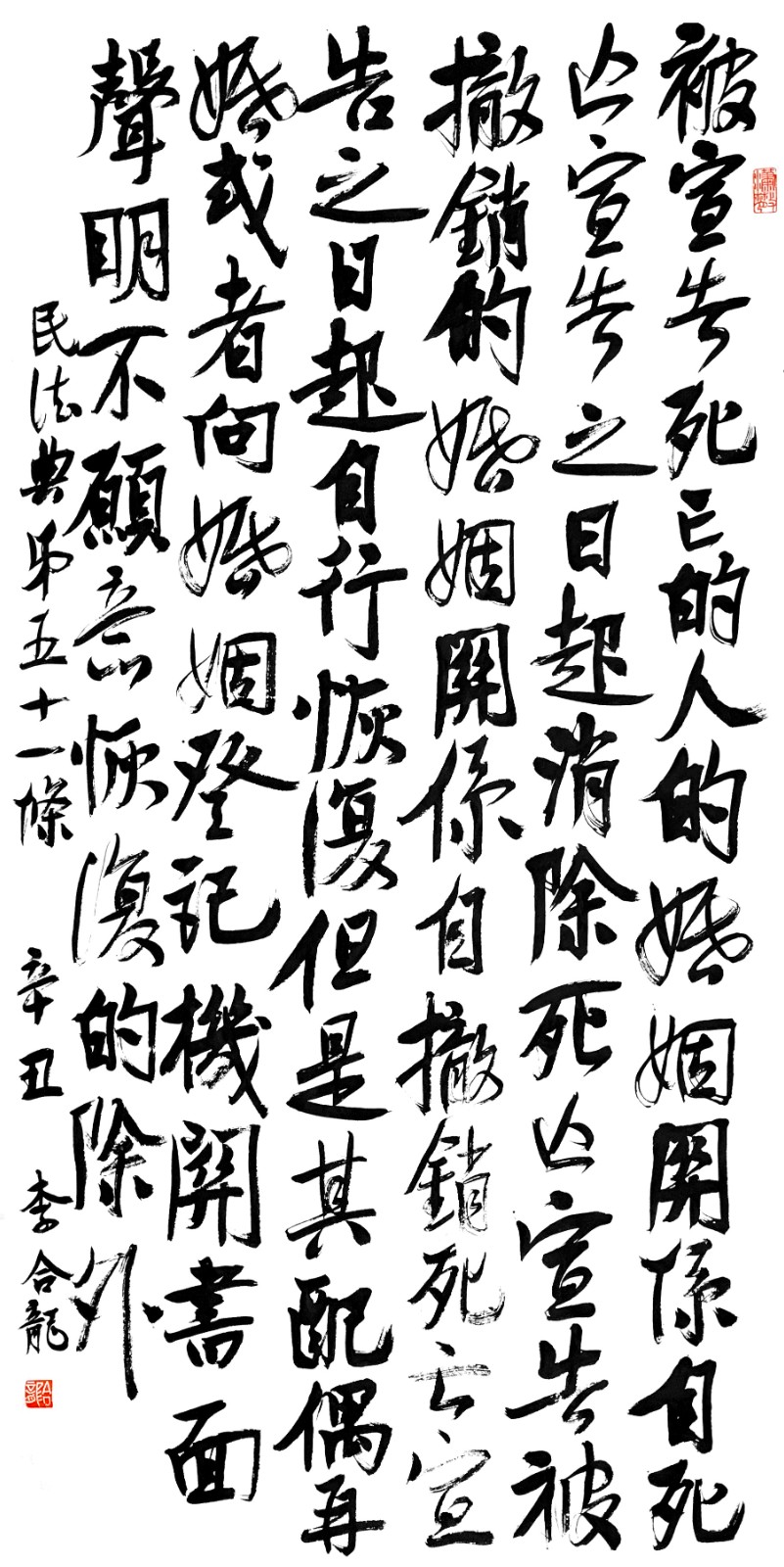 “書·法”活動(dòng)以書寫《中華人民共和國民法典》法條開筆,未來將對準(zhǔn)更多的法律。