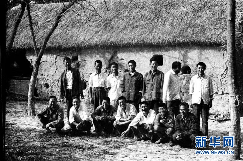 1981年,部分“大包干”帶頭人在茅草屋農(nóng)舍前合影(資料照片)。小崗,這個被寫在歷史教科書上的村莊,迎來又一年的豐收。如今的場景讓人難以想象:40多年前,這是一個吃糧靠返銷、用錢靠救濟(jì)、生產(chǎn)靠貸款的“三靠村”。山鄉(xiāng)巨變,要從當(dāng)年18位莊稼漢的“紅手印”說起。新華社發(fā)