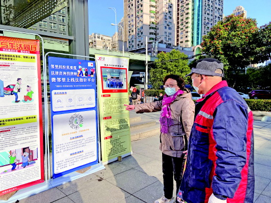 二○二○年十二月三十一日,“武漢市社區(qū)矛盾糾紛調(diào)處化解系統(tǒng)”(“法指針”)正式上線,在全市發(fā)布推廣。圖為武漢市武昌區(qū)居民現(xiàn)場了解“法指針”系統(tǒng)。(資料圖片)