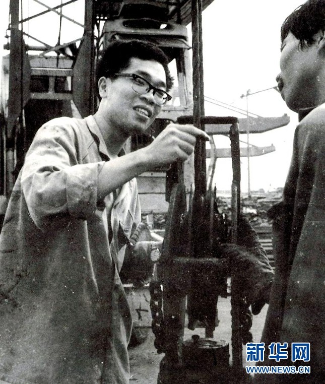 包起帆(左)在上海港碼頭和工友一道研究裝卸貨物工作中存在的問題(資料照片)。新華社發(fā)