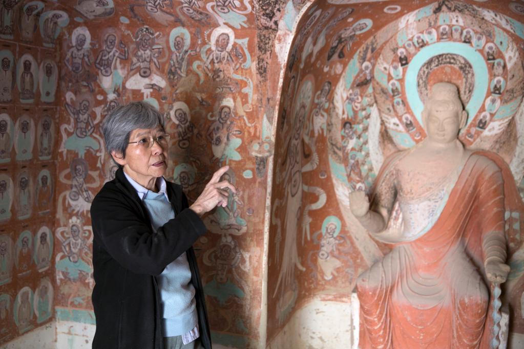 她是敦煌研究院名譽院長樊錦詩。1938年,祖籍杭州的樊錦詩出生在北京,自1963年大學(xué)畢業(yè)后,她便開始了與莫高窟長達半個多世紀的相守。在她和同事的努力下,莫高窟在1987年成為中國首批進入世界文化遺產(chǎn)名錄的遺產(chǎn)地,并逐步成為世界文化遺產(chǎn)保護和利用的全球典范。