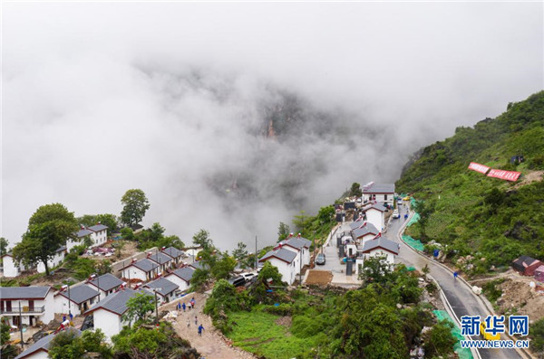2020年6月30日,一輛客運面包車行駛在四川涼山州布拖縣阿布洛哈村新完工的村道上(無人機(jī)照片)。新華社記者 江宏景 攝