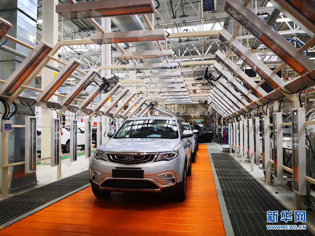 這是2018年12月1日在白俄羅斯首都明斯克東北方向50公里處的白俄羅斯吉利全散件汽車制造廠總裝車間拍攝的準備下線的汽車。新華社記者 張若玄 攝