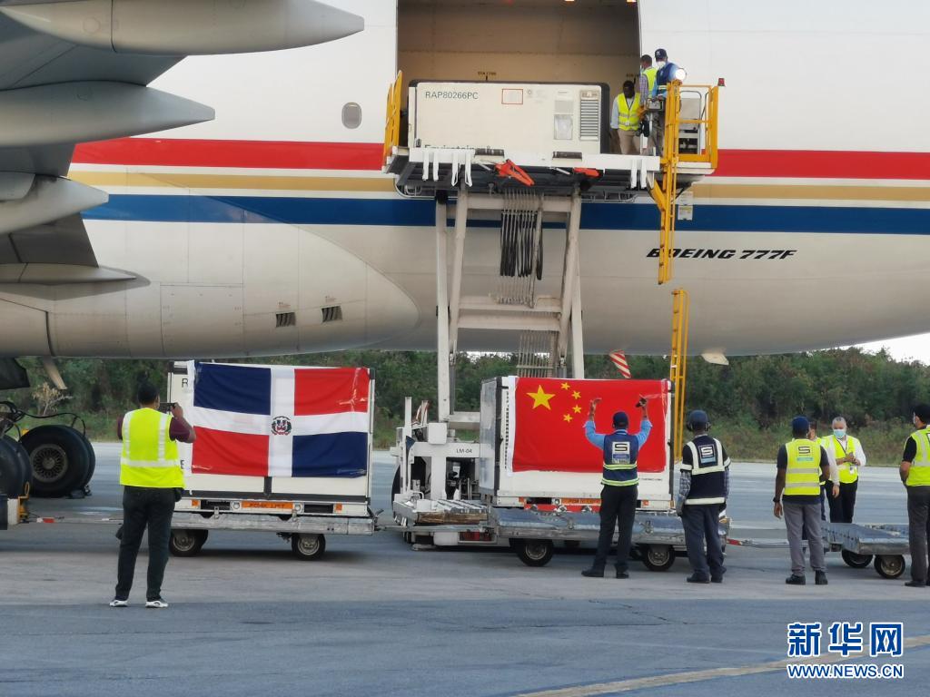 這是2021年3月17日,運載中國援助的新冠疫苗等物資的飛機抵達多米尼加首都圣多明各。新華社發(fā)(中國駐多米尼加大使館供圖)