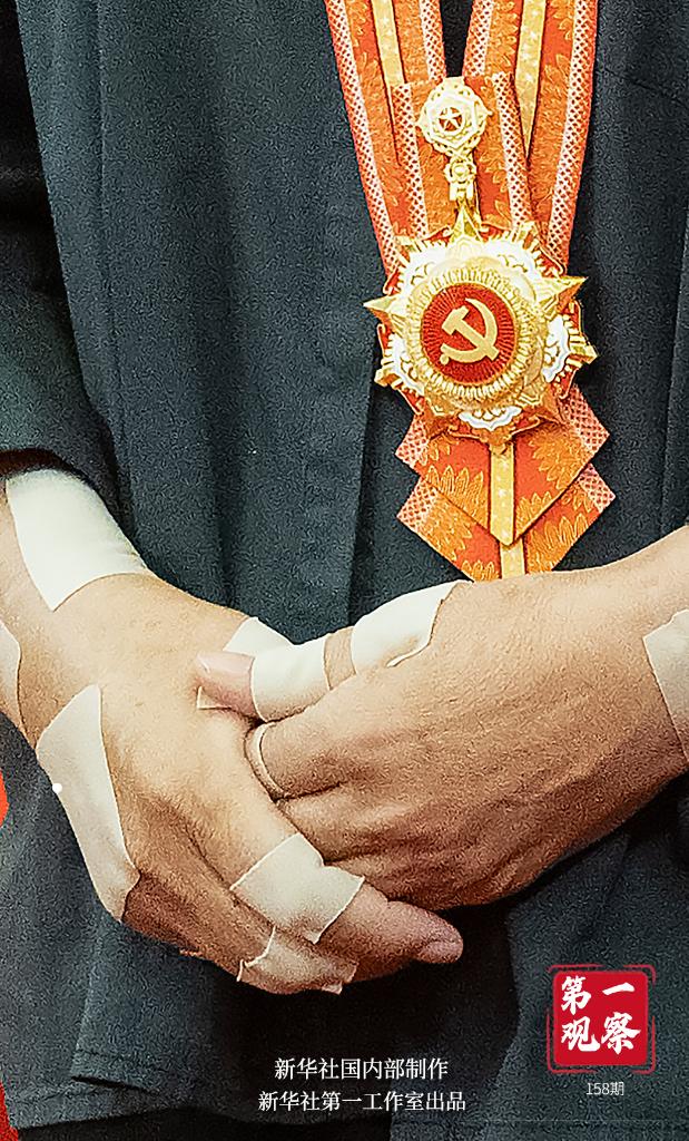 一雙貼滿膏藥的普通勞動者的手,捧起代表黨內(nèi)最高榮譽的“七一勛章”。