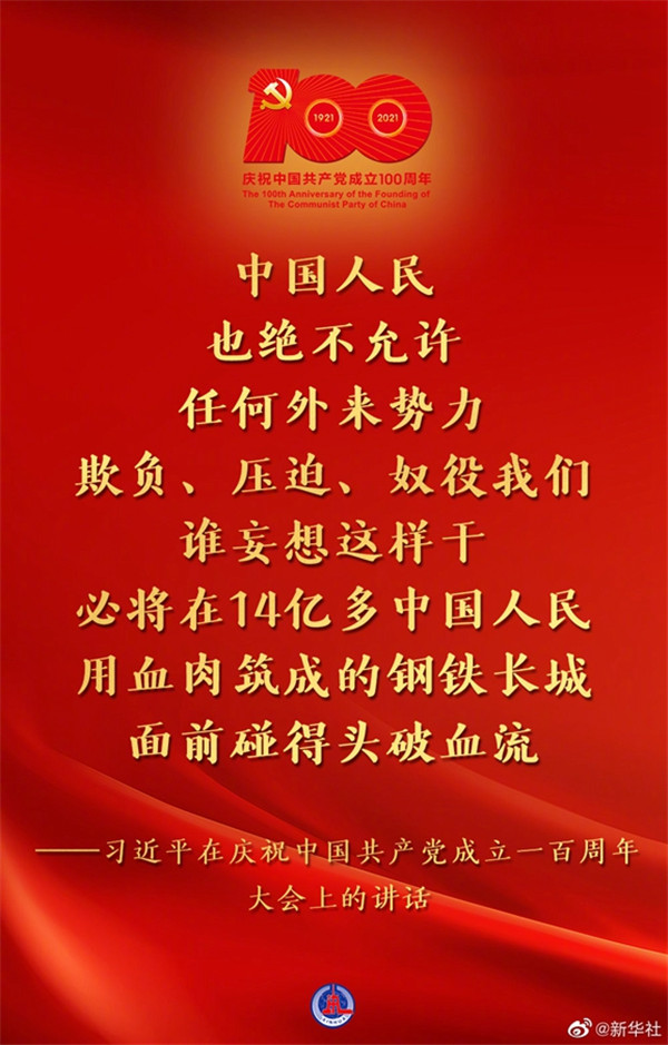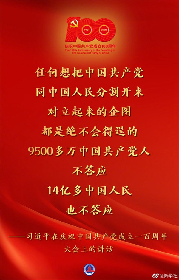 7月1日,慶祝中國(guó)共產(chǎn)黨成立一百周年大會(huì)在北京隆重舉行,習(xí)近平總書記出席并發(fā)表重要講話??匆c(diǎn)↓