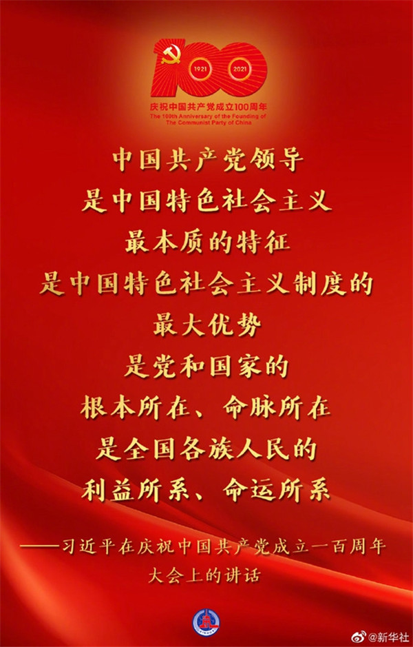 習(xí)近平在慶祝中國(guó)共產(chǎn)黨成立一百周年大會(huì)上的講話金句