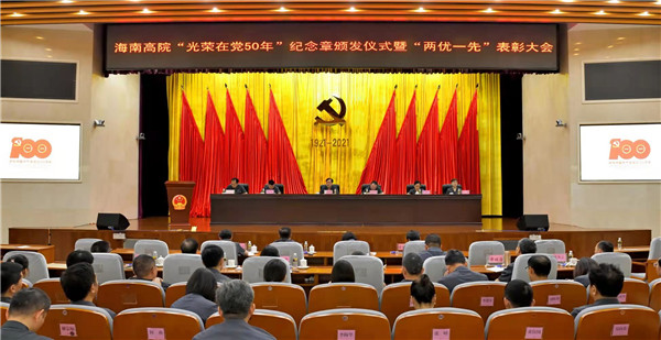 6月30日上午,海南省高院隆重召開“光榮在黨50年”紀(jì)念章頒發(fā)儀式暨“兩優(yōu)一先”表彰大會(huì)。省高院黨組書記、院長陳鳳超出席會(huì)議并講話。