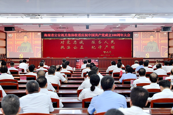 奮斗百年路,啟航新征程。7月1日上午8時(shí),慶祝中國(guó)共產(chǎn)黨成立100周年大會(huì)在北京天安門廣場(chǎng)隆重舉行。海南省公安機(jī)關(guān)在做好各項(xiàng)安保任務(wù)的同時(shí),組織民警集中收聽(tīng)收看大會(huì)盛況。副省長(zhǎng)、公安廳黨委書記、廳長(zhǎng)閆希軍在省公安廳主會(huì)場(chǎng)收聽(tīng)收看大會(huì)實(shí)況。