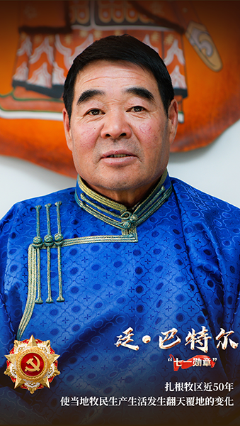 66歲的廷·巴特爾跟草原和牧民打了大半輩子交道。上周,他在人民大會堂金色大廳領(lǐng)獎(jiǎng)臺,戴上了代表黨內(nèi)最高榮譽(yù)的“七一勛章”。