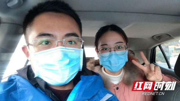 鄭能量(左)接送醫(yī)護人員上下班時的合影。