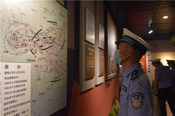 在大余梅嶺,民輔警代表參觀了陳毅紀(jì)念館,聆聽開國(guó)元?jiǎng)讉冊(cè)谄D苦卓絕斗爭(zhēng)條件下的感人故事,感受革命前輩勇往直前的斗志和視死如歸的氣魄。誦讀《梅嶺三章》,深切感受那激蕩天地的革命豪情以及堅(jiān)貞不屈的人格力量。