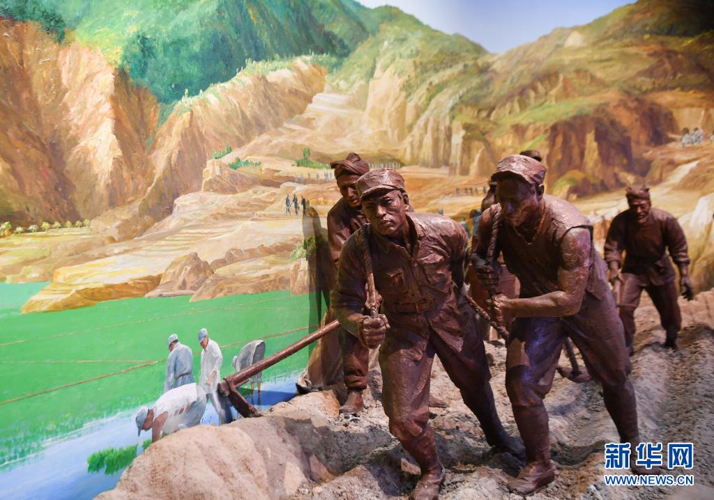 南泥灣大生產(chǎn)紀念館內(nèi)的雕塑作品(7月22日攝)。新華社記者 張博文 攝