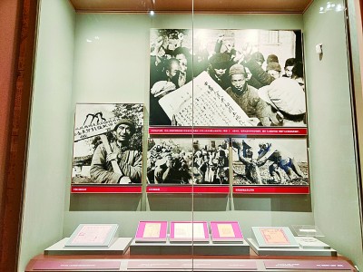 1928年,毛澤東主持制定了黨領(lǐng)導(dǎo)下的第一部土地法《井岡山土地法》,以法律的形式首次肯定了農(nóng)民以革命手段獲得土地的權(quán)利。1929年,毛澤東主持制定《興國(guó)土地法》,保護(hù)了中農(nóng)的利益。土地革命時(shí)期,黨領(lǐng)導(dǎo)頒布的土地法律法令,推動(dòng)了土地革命深入進(jìn)行。圖為展覽中的《興國(guó)土地法》文本。