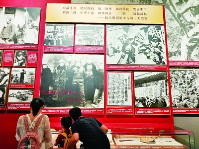 延安時(shí)期,黨在領(lǐng)導(dǎo)邊區(qū)法治建設(shè)的過程中,進(jìn)行了歷史性探索?!蛾兏蕦庍厖^(qū)施政綱領(lǐng)》成為抗戰(zhàn)時(shí)期邊區(qū)的根本大法?!包S克功案件”的審判,彰顯了從嚴(yán)治黨、從嚴(yán)治軍的決心?!榜R錫五審判方式”的確立,為新民主主義司法制度注入了新鮮血液,也為新中國(guó)司法制度的建立提供了有益經(jīng)驗(yàn)。圖為觀眾在參觀抗日根據(jù)地建設(shè)有關(guān)情況。