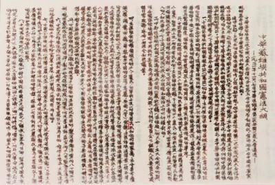 《中華蘇維埃共和國(guó)憲法大綱》是第一部由勞動(dòng)人民制定的根本法,是共產(chǎn)黨領(lǐng)導(dǎo)人民反帝反封建的偉大綱領(lǐng),為以后制定民主憲法提供了寶貴經(jīng)驗(yàn)。圖為展覽中的《中華蘇維埃共和國(guó)憲法大綱》文本。