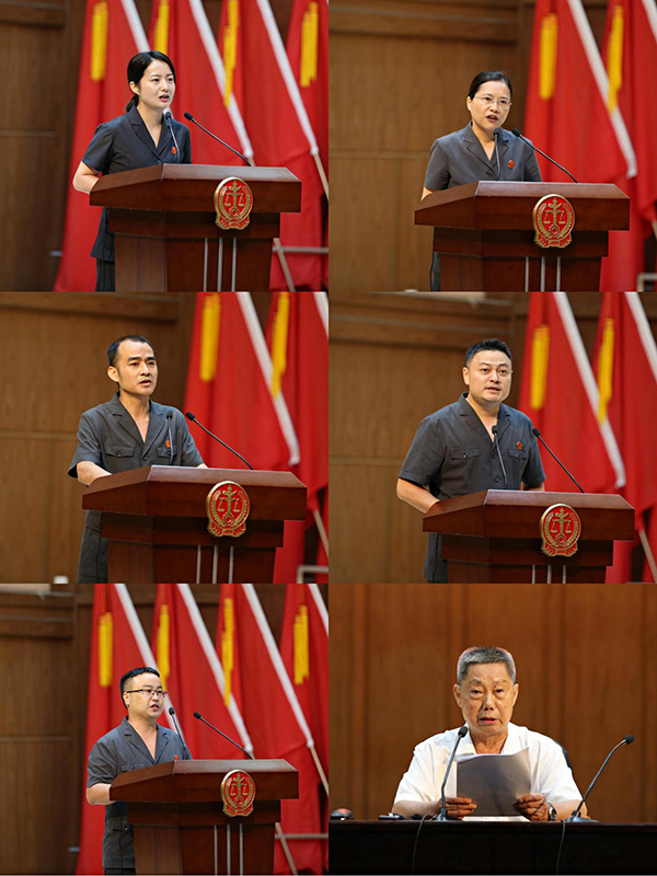 報(bào)告會(huì)上,5名英模事跡報(bào)告團(tuán)成員作報(bào)告。報(bào)告團(tuán)成員有2名是湖南法院英模生前戰(zhàn)友,3名是湖南法院優(yōu)秀法官代表。湖南高院民一庭法官助理龍菲深情追憶湖南高院審監(jiān)一庭原副庭長(zhǎng)、“全國(guó)模范法官”“全國(guó)三八紅旗手”“湖南省優(yōu)秀共產(chǎn)黨員”周春梅同志用生命捍衛(wèi)公平正義的英雄事跡。湖南高院民三庭副庭長(zhǎng)陳小珍深情講述了她的同事徐康同志深耕審判業(yè)務(wù),始終躬行為民的感人事跡?!叭珖?guó)優(yōu)秀法官”、長(zhǎng)沙中院民三庭副庭長(zhǎng)何豪杰講述了自己遵循“堂堂正正做人,明明白白辦事”的行為準(zhǔn)則,求真務(wù)實(shí)、依法公正辦案的感人故事?!叭珖?guó)優(yōu)秀法官”、“全國(guó)法院十大亮點(diǎn)人物”、“湖南省優(yōu)秀青年衛(wèi)士”、湘潭縣法院刑事審判庭庭長(zhǎng)崔贛講述了自己堅(jiān)守基層一線、踐行使命擔(dān)當(dāng)、守護(hù)一方平安的動(dòng)人事跡?!叭珖?guó)法院人民法庭工作先進(jìn)個(gè)人”、“全國(guó)法院辦案標(biāo)兵”、湘西龍山縣人民法院刑事審判庭庭長(zhǎng)田代飛以《土家山寨的“喳西呔”》為題講述了自己經(jīng)過(guò)不懈努力,讓法律走進(jìn)老百姓的生活,在每一起案件的公正審判與耐心調(diào)解中,滿足人民群眾對(duì)公平正義期待的感人事跡。