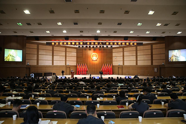 報(bào)告會(huì)還邀請(qǐng)了“老法院人”代表吳政祥講優(yōu)良傳統(tǒng)。吳政祥以生動(dòng)的故事、質(zhì)樸的話語(yǔ)講述了他在湖南省法院審判一線不忘初心、牢記使命的奮斗歷程。他勉勵(lì)青年干警要樹(shù)立遠(yuǎn)大理想和抱負(fù),練就健康體魄,珍愛(ài)自己的職業(yè)、榮譽(yù)和家庭,珍惜國(guó)家和人民賦予的審判執(zhí)行權(quán)力,為湖南法院審判執(zhí)行事業(yè)高質(zhì)量發(fā)展貢獻(xiàn)力量,成為忠誠(chéng)干凈擔(dān)當(dāng)?shù)暮戏ㄔ鸿F軍中的一員。