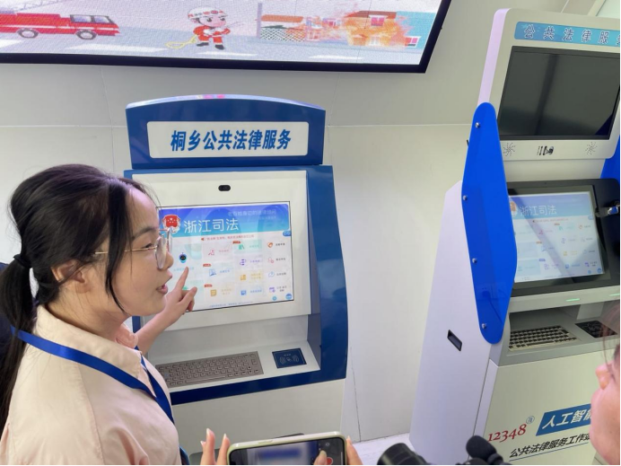 烏鎮(zhèn)司法所副所長(zhǎng)郭蕓說(shuō),為滿足群眾快速獲得公共法律服務(wù)的需求,烏鎮(zhèn)司法所在人流密集處打造了“24小時(shí)法超市”,為有需要的群眾提供法律機(jī)器人問(wèn)答、律師視頻解答、法律文書下載等“一站式”公共法律服務(wù)。