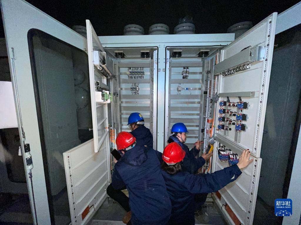 “韓舒技師創(chuàng)新工作室”團隊在一處突發(fā)照明電源失電現(xiàn)場搶修(2月12日手機拍攝)。新華社發(fā)