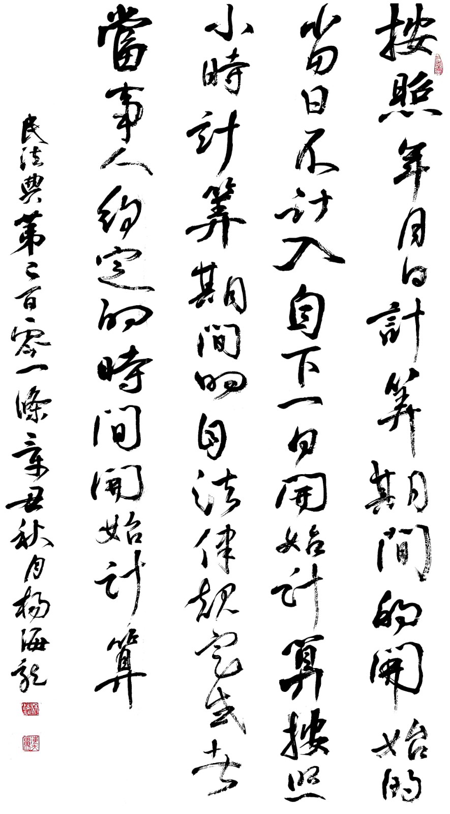 民法典第二百零一條 按照年、月、日計(jì)算期間的,開始的當(dāng)日不計(jì)入,自下一日開始計(jì)算。