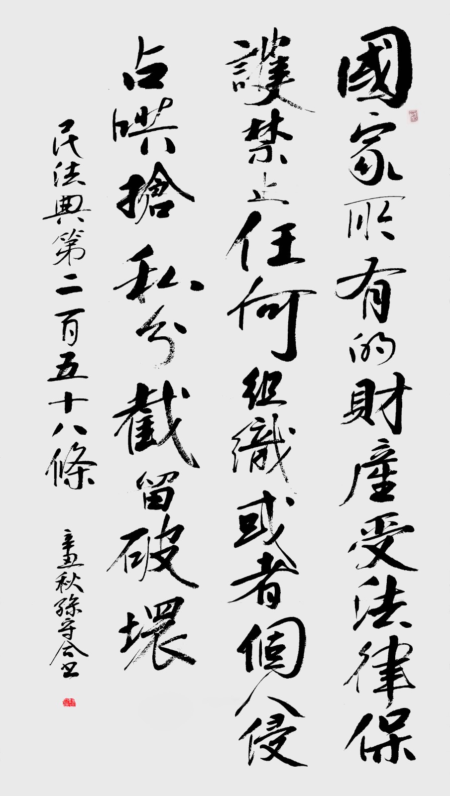 “書·法”活動(dòng)以書寫《中華人民共和國(guó)民法典》法條開筆,未來(lái)將對(duì)準(zhǔn)更多的法律。