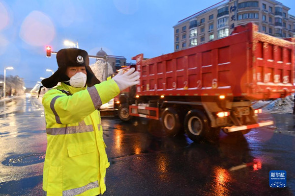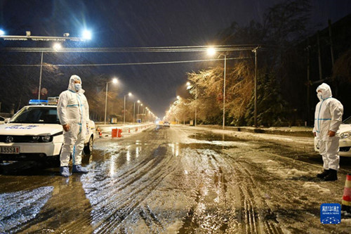 當(dāng)日,冰城哈爾濱迎來(lái)降雪、凍雨、大風(fēng)降溫天氣的“合圍”。在哈爾濱市平房區(qū),那些在低溫之下堅(jiān)守戶外的“疫”線工作者頂寒風(fēng)冒雨雪,筑牢疫情防控的安全屏障。