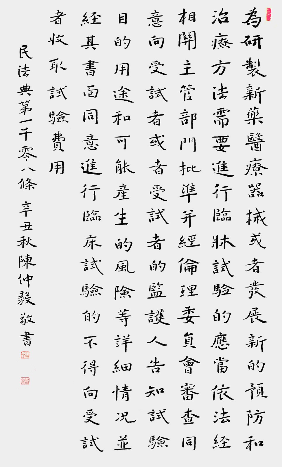 民法典第一千零八條 為研制新藥、醫(yī)療器械或者發(fā)展新的預防和治療方法,需要進行臨床試驗的,應當依法經相關主管部門批準并經倫理委員會審查同意,向受試者或者受試者的監(jiān)護人告知試驗目的、用途和可能產生的風險等詳細情況,并經其書面同意。