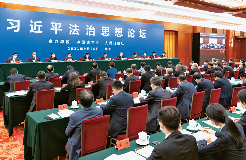 2021年9月26日,由中國法學(xué)會和人民日報(bào)社聯(lián)合主辦的習(xí)近平法治思想論壇在京舉行。論壇以“堅(jiān)定不移走中國特色社會主義法治道路,為全面建成社會主義現(xiàn)代化強(qiáng)國而努力奮斗”為主題,旨在推動社會各界特別是法學(xué)法律界認(rèn)真學(xué)習(xí)、深入研究、扎實(shí)宣傳習(xí)近平法治思想,自覺用習(xí)近平法治思想武裝頭腦、指導(dǎo)實(shí)踐、推動工作,譜寫新時代全面依法治國新篇章?! 睹裰髋c法制》社記者 戎珊/攝
