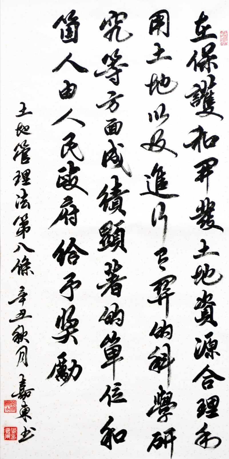 繼1600余位書(shū)法家參與書(shū)寫《中華人民共和國(guó)民法典》全部1260條法條之后,法治日?qǐng)?bào)社聯(lián)合自然資源部法規(guī)司、自然資源部書(shū)畫(huà)研究會(huì)和北京昌平書(shū)法家協(xié)會(huì),將筆端對(duì)準(zhǔn)土地管理“一法一條例”,即《中華人民共和國(guó)土地管理法》和《中華人民共和國(guó)土地管理法實(shí)施條例》。