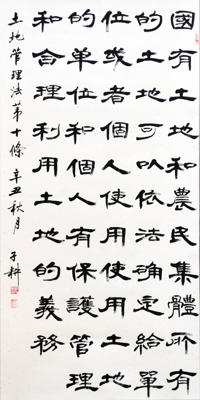 繼1600余位書法家參與書寫《中華人民共和國民法典》全部1260條法條之后,法治日報社聯(lián)合自然資源部法規(guī)司、自然資源部書畫研究會和北京昌平書法家協(xié)會,將筆端對準(zhǔn)土地管理“一法一條例”,即《中華人民共和國土地管理法》和《中華人民共和國土地管理法實施條例》。