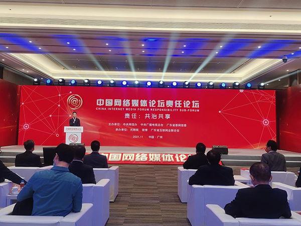 11月24日,2021中國網絡媒體論壇責任論壇在廣東省廣州市廣交會展館舉行,主題為“責任:共治共享”。中央網信辦副主任、國家網信辦副主任牛一兵,光明日報社總編輯王慧敏,廣東省委常委、宣傳部部長陳建文等領導和嘉賓出席論壇。