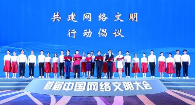 在首屆中國(guó)網(wǎng)絡(luò)文明大會(huì)上,共建網(wǎng)絡(luò)文明行動(dòng)倡議發(fā)布。資料圖片