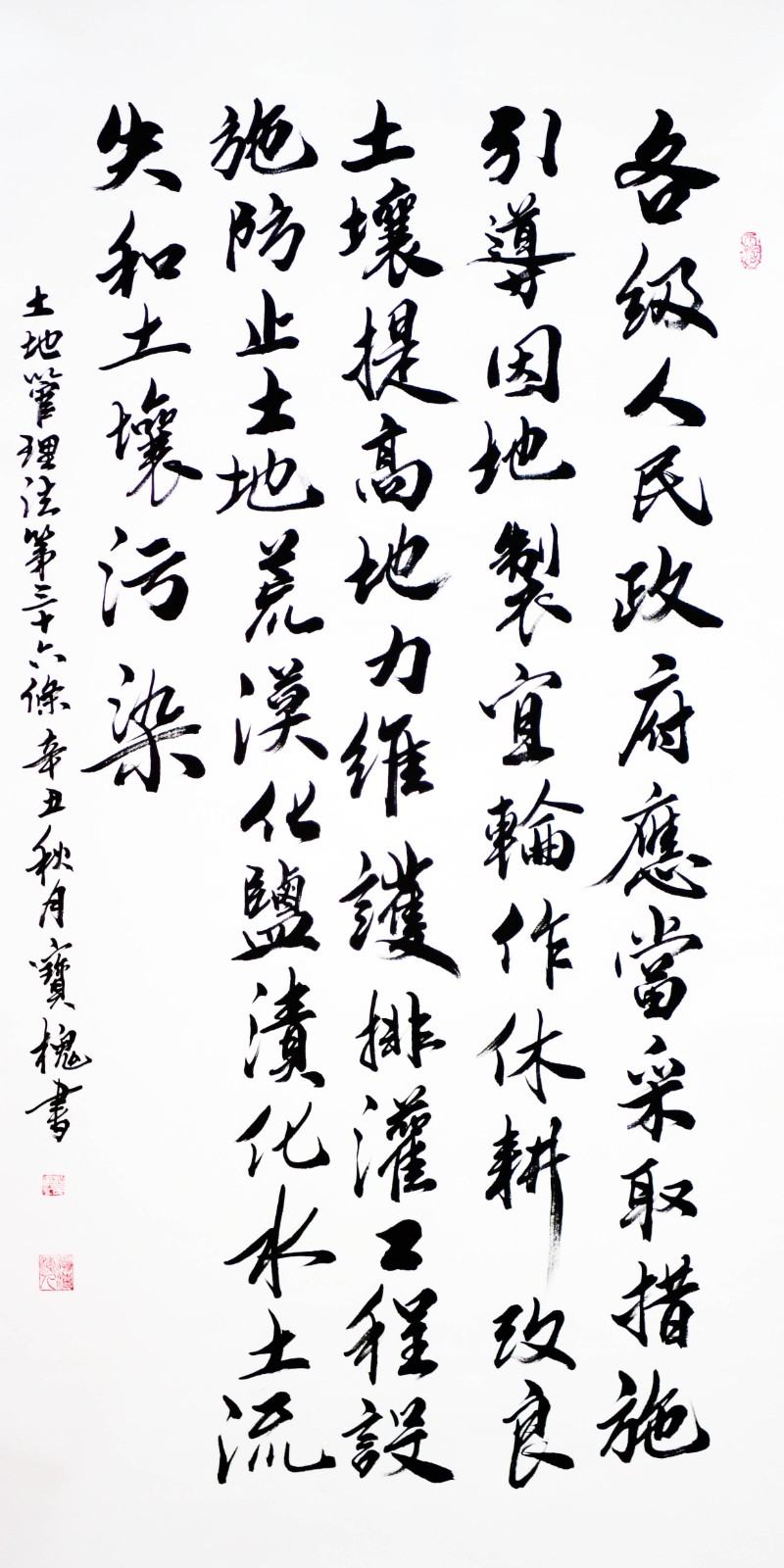 繼1600余位書法家參與書寫《中華人民共和國民法典》全部1260條法條之后,法治日報社聯(lián)合自然資源部法規(guī)司、自然資源部書畫研究會和北京昌平書法家協(xié)會,將筆端對準(zhǔn)土地管理“一法一條例”,即《中華人民共和國土地管理法》和《中華人民共和國土地管理法實施條例》。