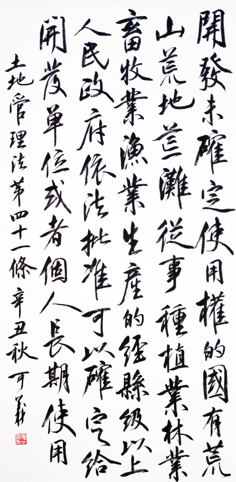 繼1600余位書(shū)法家參與書(shū)寫(xiě)《中華人民共和國(guó)民法典》全部1260條法條之后,法治日?qǐng)?bào)社聯(lián)合自然資源部法規(guī)司、自然資源部書(shū)畫(huà)研究會(huì)和北京昌平書(shū)法家協(xié)會(huì),將筆端對(duì)準(zhǔn)土地管理“一法一條例”,即《中華人民共和國(guó)土地管理法》和《中華人民共和國(guó)土地管理法實(shí)施條例》。