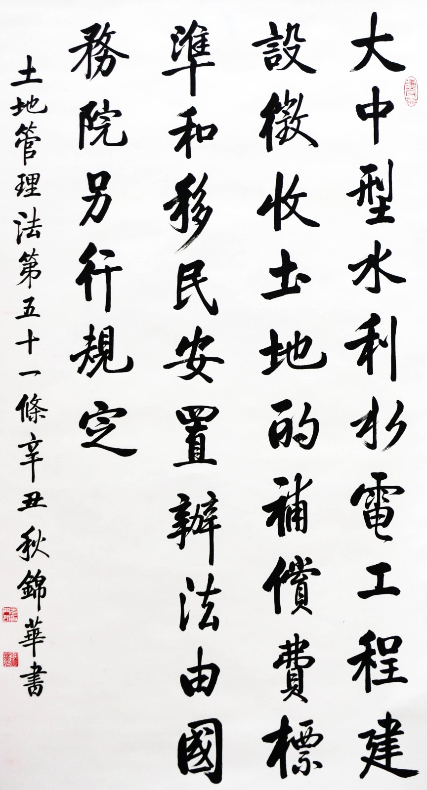 繼1600余位書法家參與書寫《中華人民共和國(guó)民法典》全部1260條法條之后,法治日?qǐng)?bào)社聯(lián)合自然資源部法規(guī)司、自然資源部書畫研究會(huì)和北京昌平書法家協(xié)會(huì),將筆端對(duì)準(zhǔn)土地管理“一法一條例”,即《中華人民共和國(guó)土地管理法》和《中華人民共和國(guó)土地管理法實(shí)施條例》。