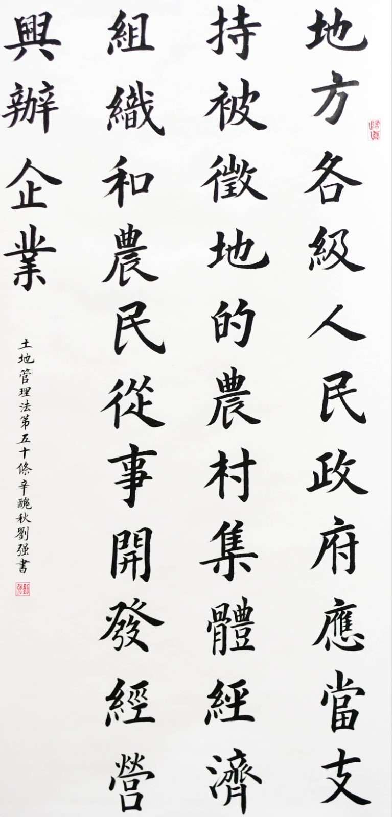 繼1600余位書法家參與書寫《中華人民共和國民法典》全部1260條法條之后,法治日報社聯(lián)合自然資源部法規(guī)司、自然資源部書畫研究會和北京昌平書法家協(xié)會,將筆端對準土地管理“一法一條例”,即《中華人民共和國土地管理法》和《中華人民共和國土地管理法實施條例》。