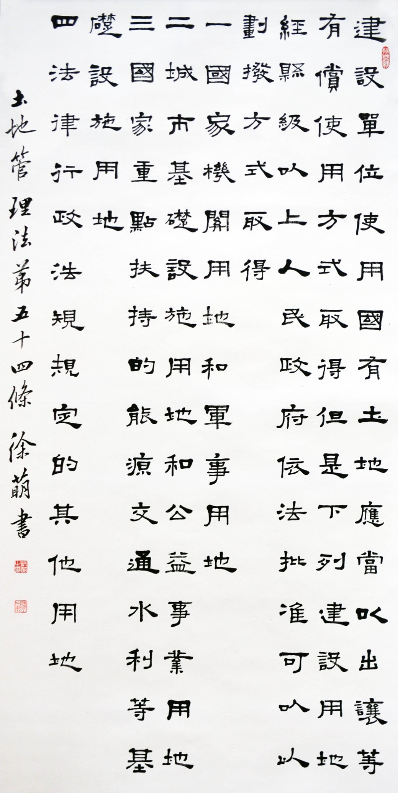繼1600余位書(shū)法家參與書(shū)寫《中華人民共和國(guó)民法典》全部1260條法條之后,法治日?qǐng)?bào)社聯(lián)合自然資源部法規(guī)司、自然資源部書(shū)畫研究會(huì)和北京昌平書(shū)法家協(xié)會(huì),將筆端對(duì)準(zhǔn)土地管理“一法一條例”,即《中華人民共和國(guó)土地管理法》和《中華人民共和國(guó)土地管理法實(shí)施條例》。